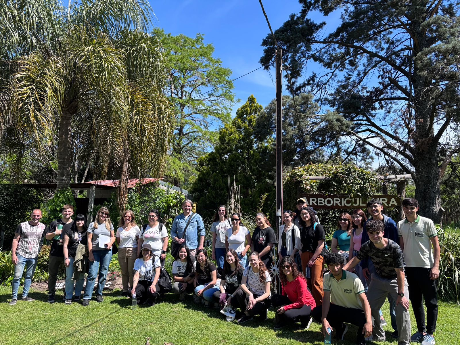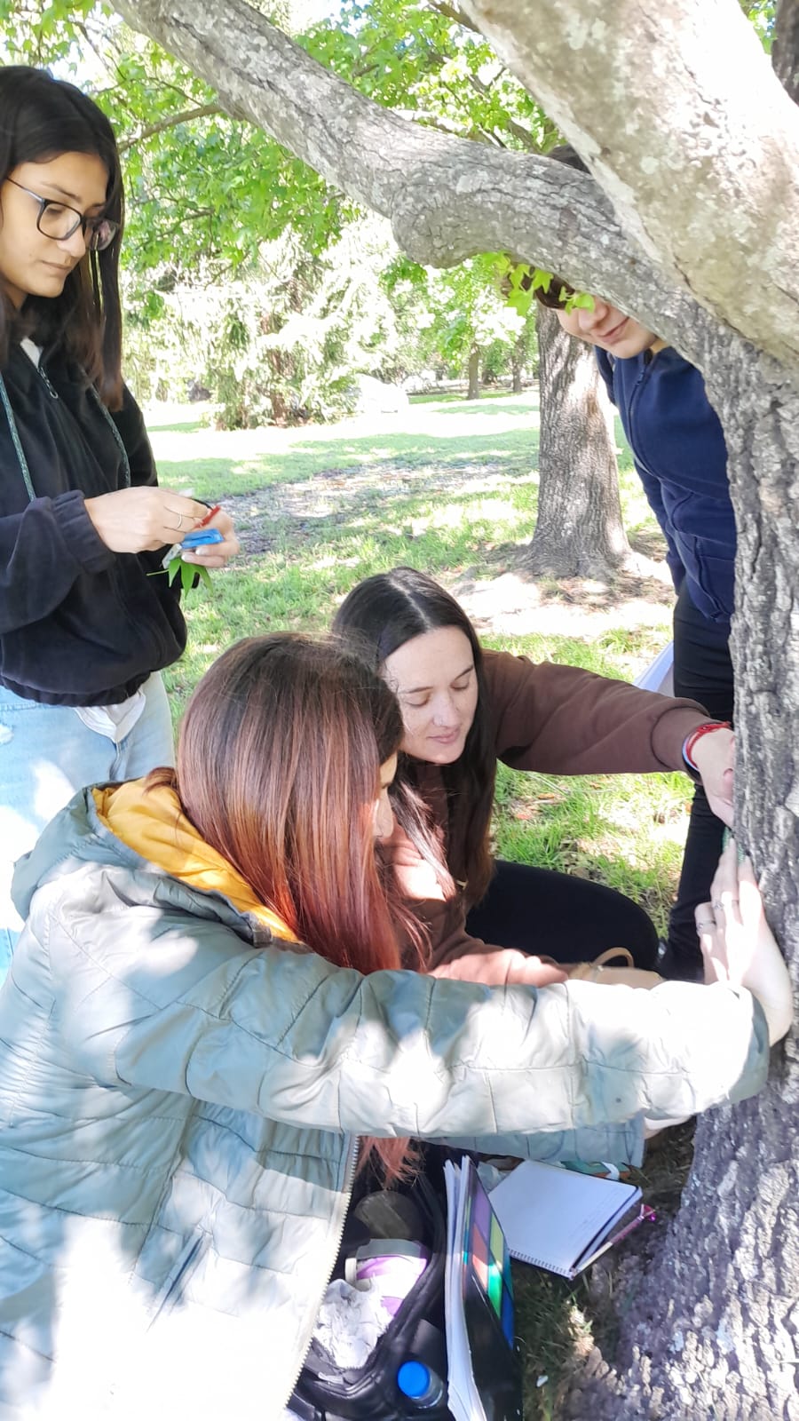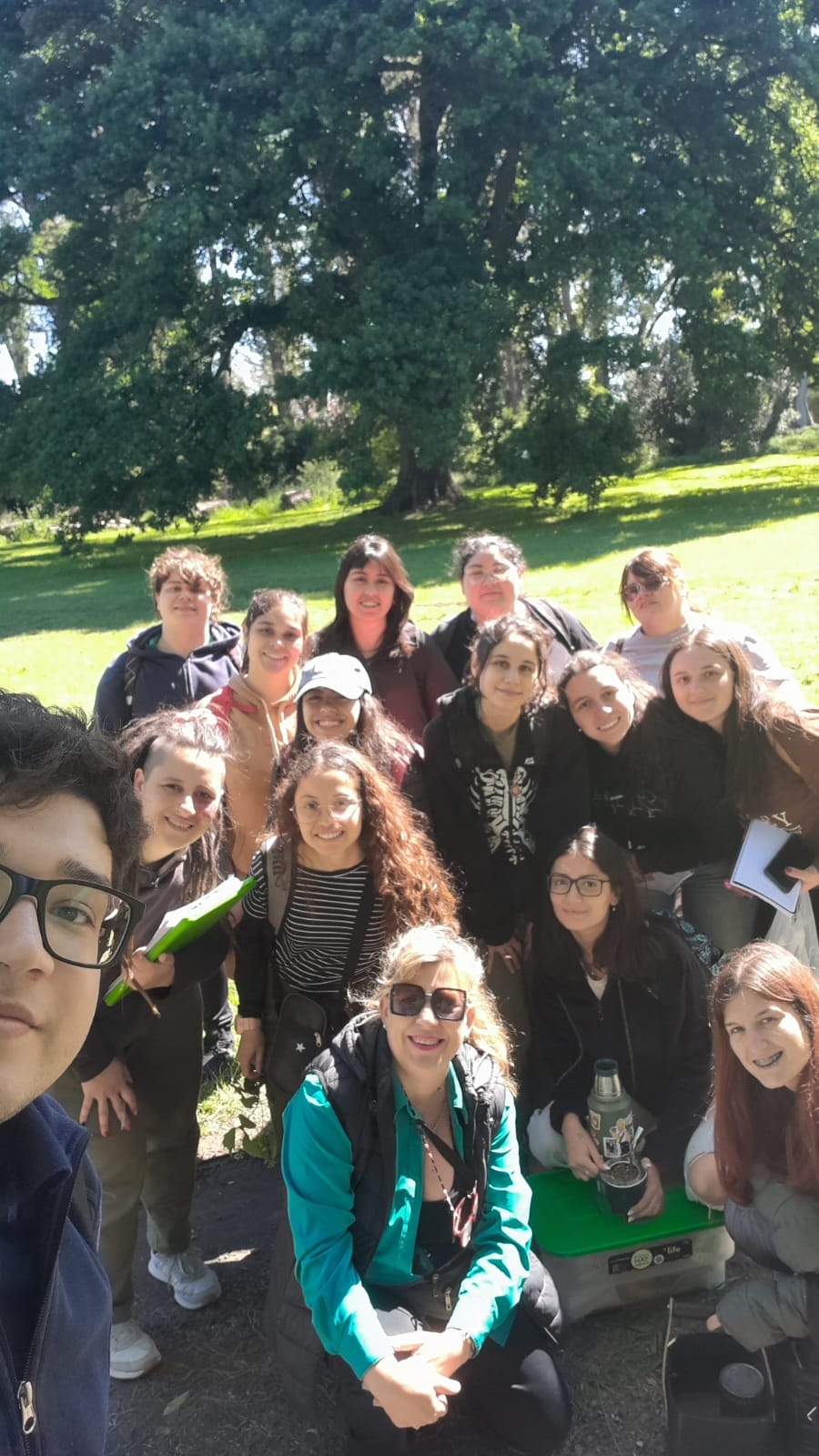 Felicitamos a la Prof. Silvia Musso y al alumnado de primer y cuarto año de la carrera de Biología quienes el pasado lunes 6 de octubre visitaron el predio de la Escuela de Agrotécnica y Facultad de Veterinaria. En esta visita, se realizaron diversas actividades como reconocimiento de especies arbóreas, calcado de cortezas y hojas, búsqueda de rastros de seres vivos, determinación de nubes, insectos y vegetales mediante guías, mediciones de temperatura al sol y a la sombra, delimitación de muestras y conteo de especies vegetales. Actividades que requieren de un marco teórico trabajado en el aula y aplicado in-situ.